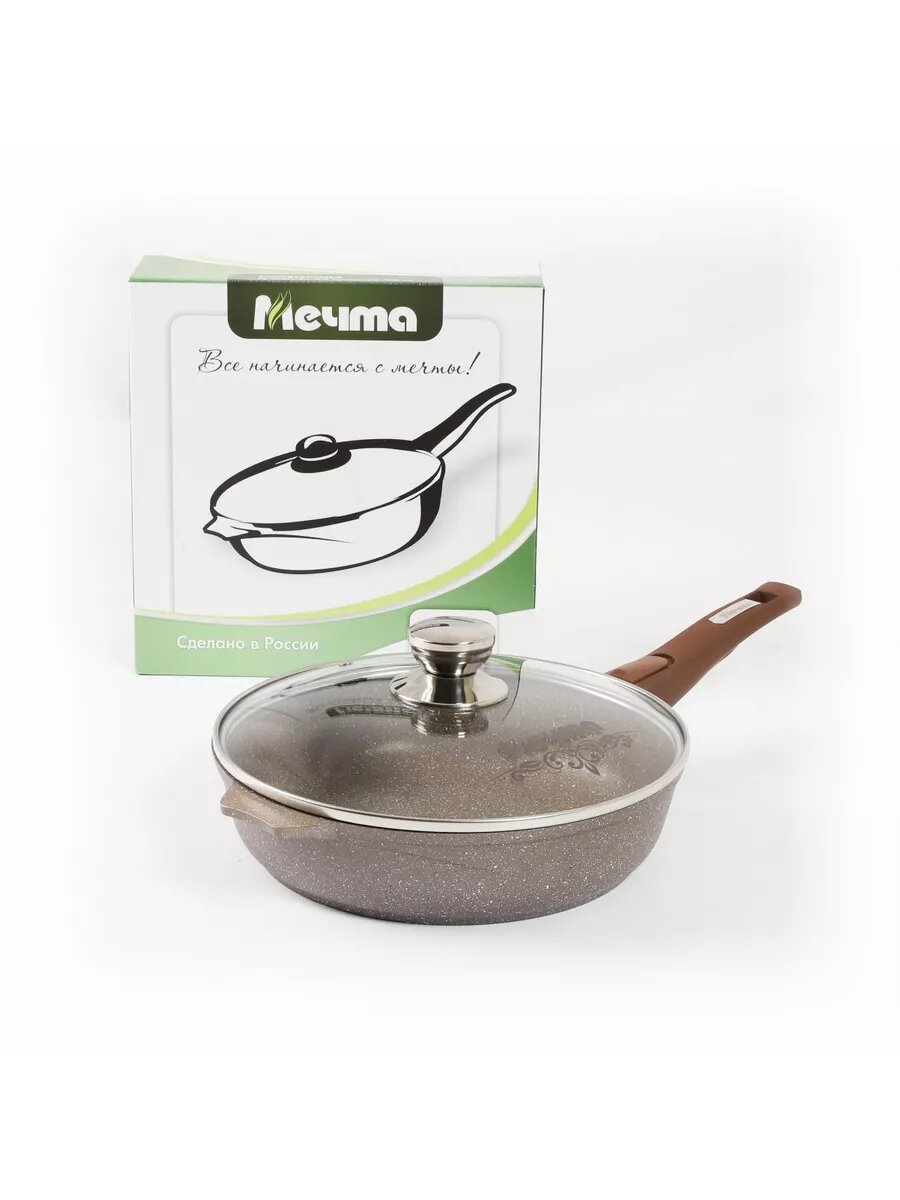 Сковорода Мечта Гранит С028806 с антипригарным покрытием со съемной ручкой и крышкой, коричневый,диаметр 28 см