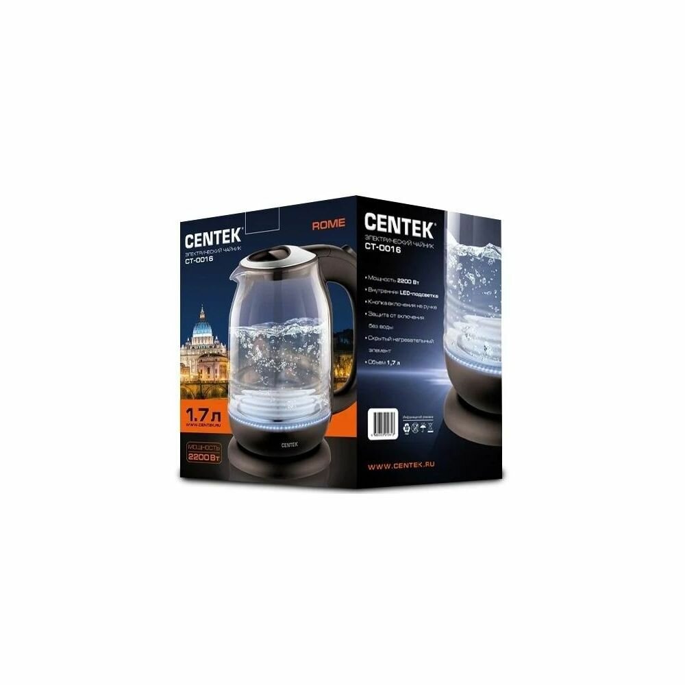 Чайник электрический CENTEK CT-0016 Rome - 1.7л, 2200Вт, стеклянный, черный