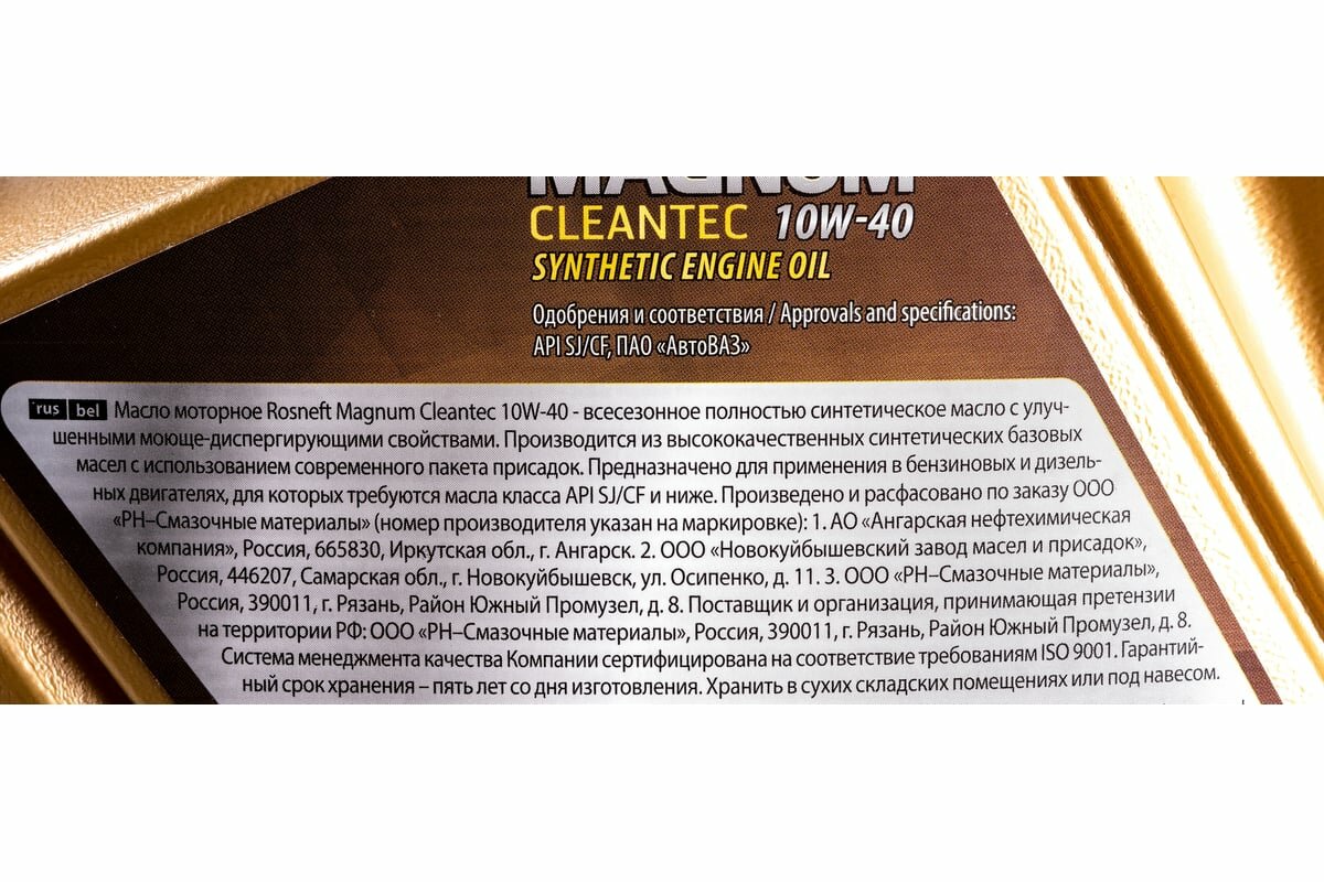 масло Rosneft Magnum Cleantec 10w40 (SJ/CF) 4л син. (Эффективное очищение двигателя)