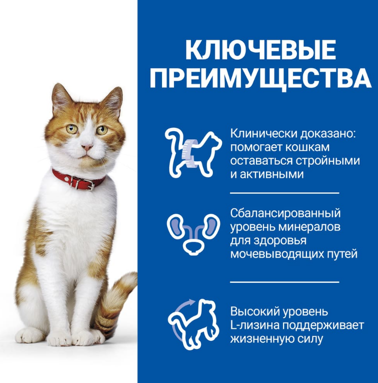 | Дополнительная информация | не рекомендуется котятам и беременным и кормящим кошкам; во время беременности и лактации кошек нужно переводить на рацион Hill's Science Plan для котят |
