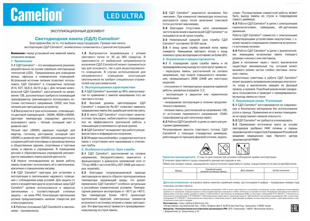 | Производитель | Camelion |