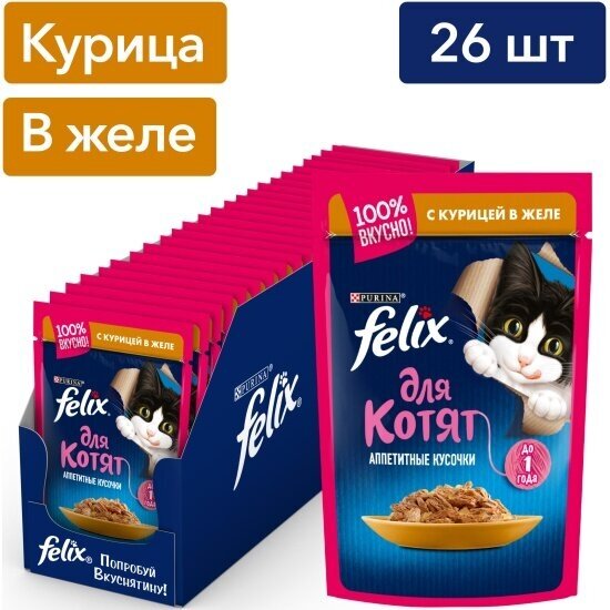 FELIX аппетитные кусочки для котят с курицей в желе (75 гр х 26 шт)