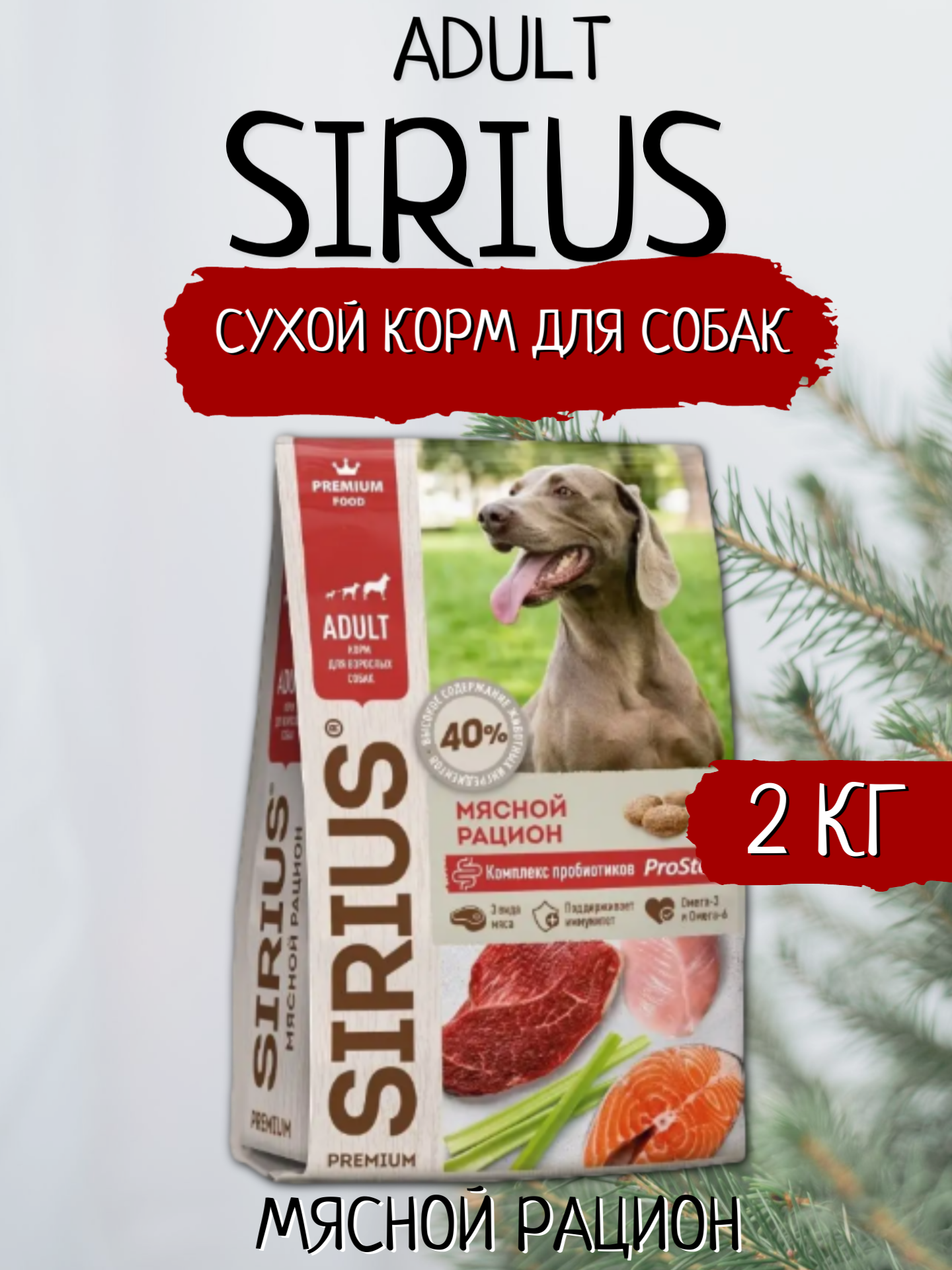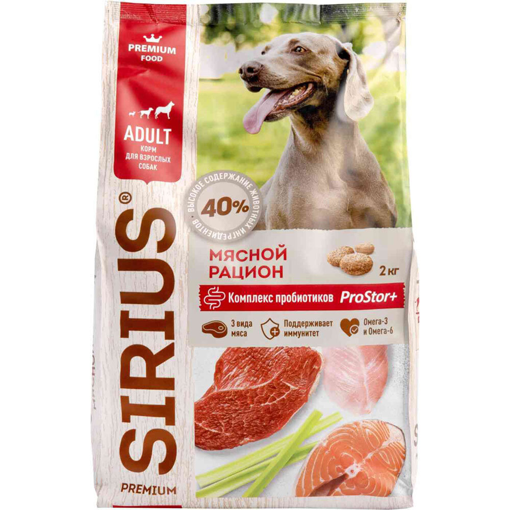 Sirius Корм сухой для взрослых собак мясной рацион, 2 кг
