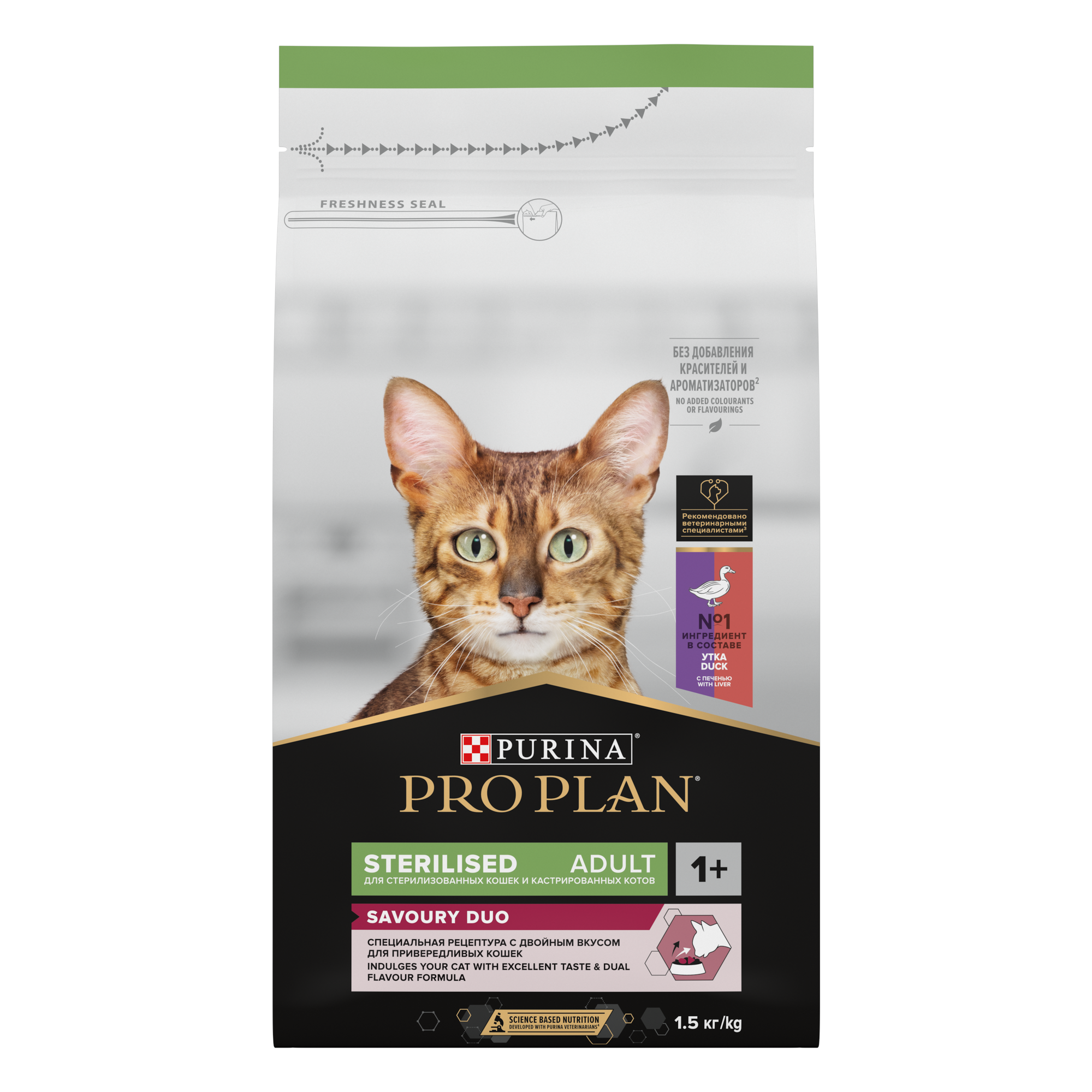 Корм для стерилизованных кошек Purina Pro Plan Opti Savour с уткой, с печенью 1.5 кг