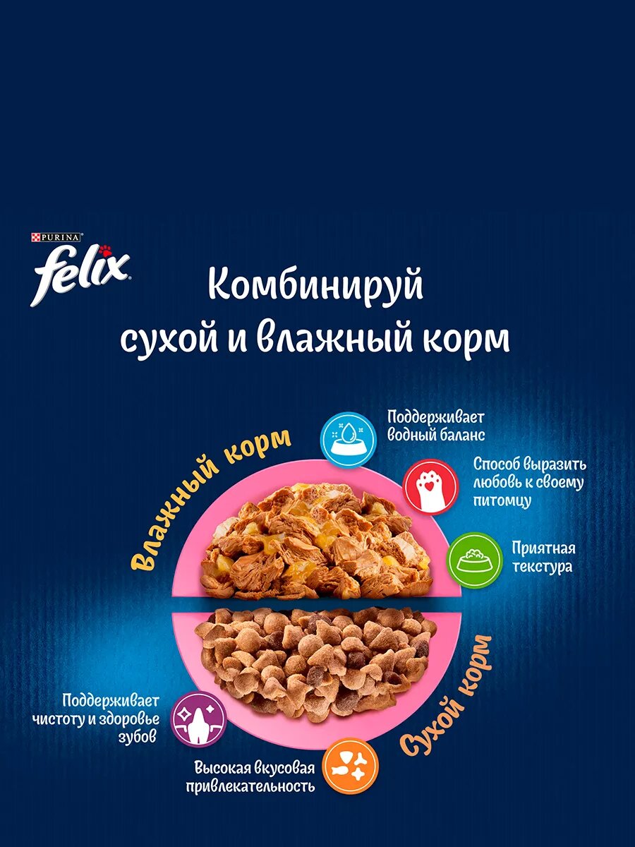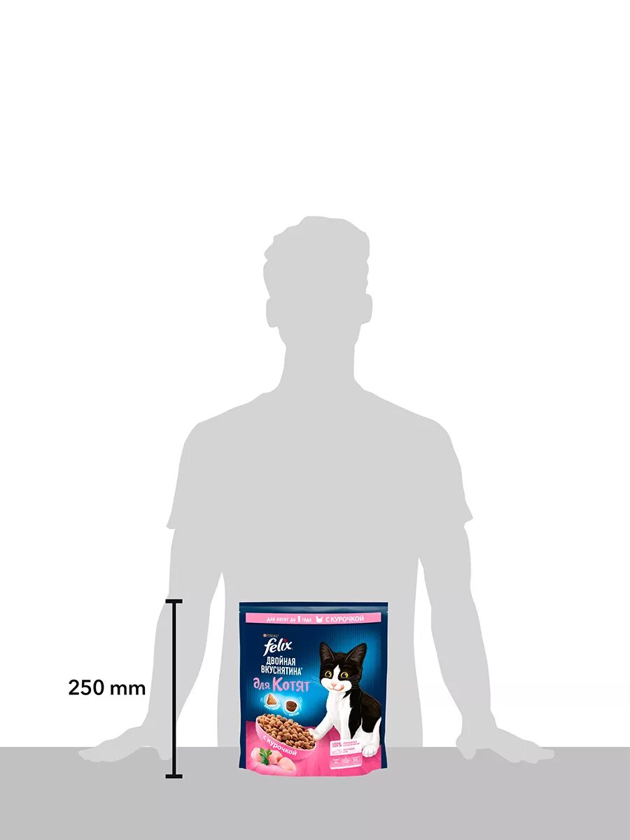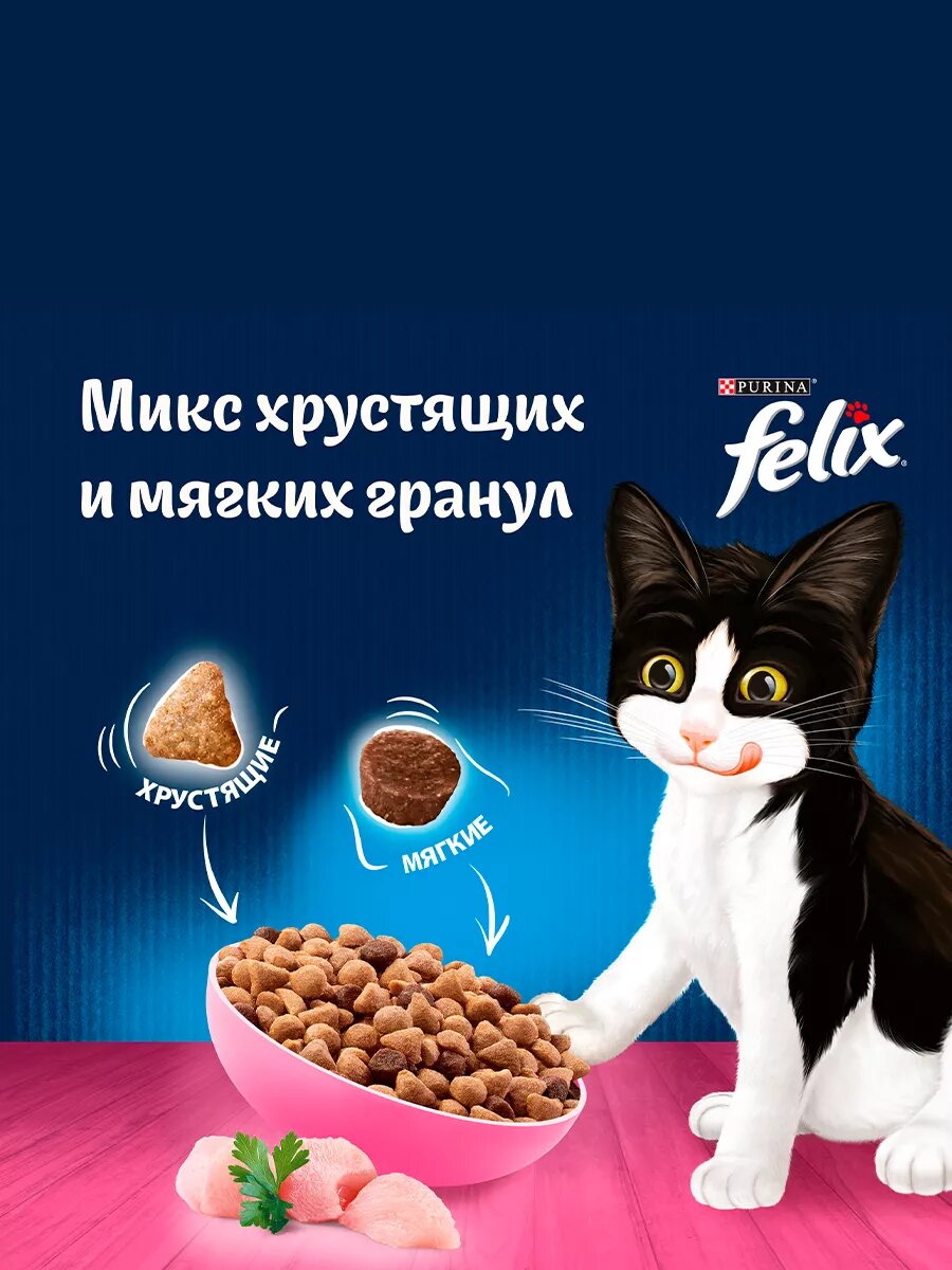 Корм для кошек сухой Феликс Двойная вкуснятина с курочкой для котят до 1 года, хрустящие гранулы и мягкие кусочки с курицей 600г / кошачья еда для