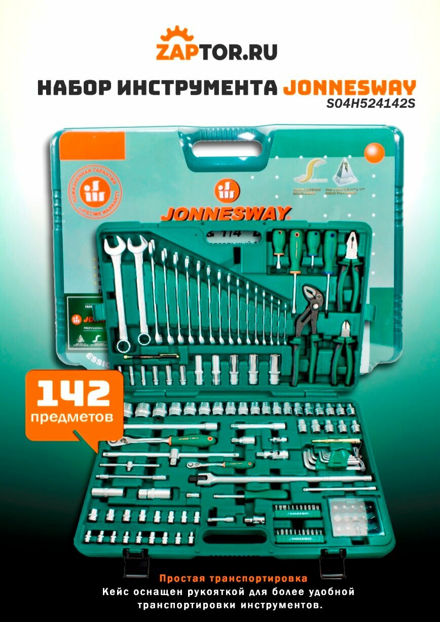 JONNESWAY S04H524142S набор инструмента универсальный 1 / 4 , 1 / 2 dr, 142 предмета