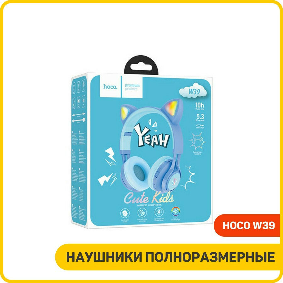 Купить Bluetooth-наушники полноразмерные Hoco W39 Cat ear kids BT, с ушками, голубые, 1 шт