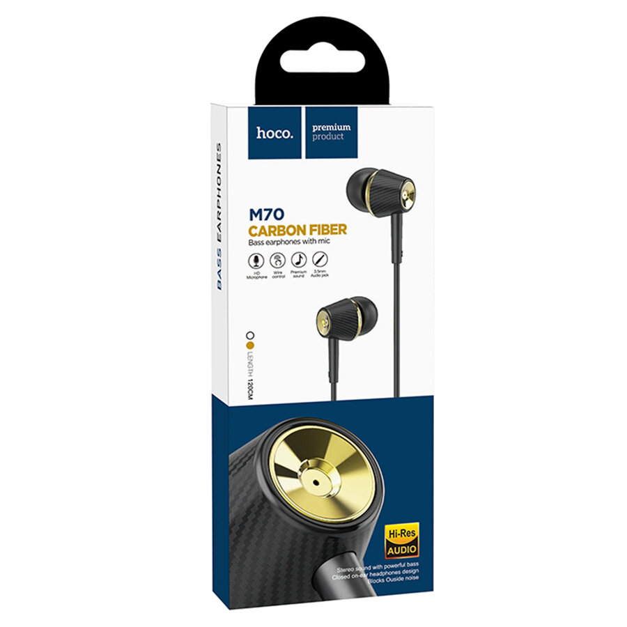 Наушники Hoco M70, проводные, вакуумные, микрофон, Jack 3.5 мм, 1.2 м, черные