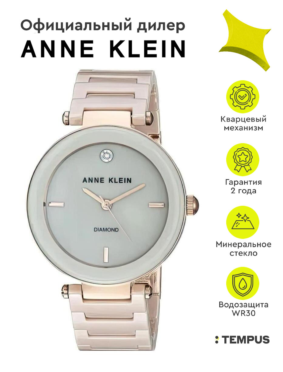 Часы наручные женские Anne Klein 1018RGTN, Кварцевые, 38 мм
