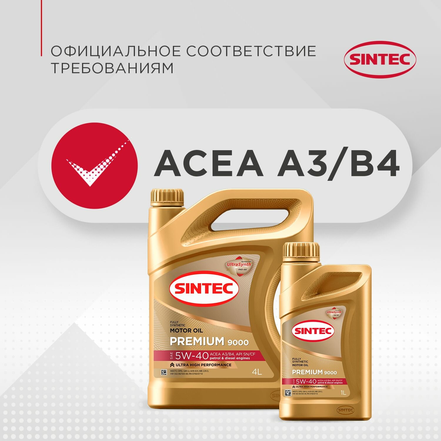 Моторное масло SINTEC PREMIUM 9000 5W-40 A3/B4, 4L