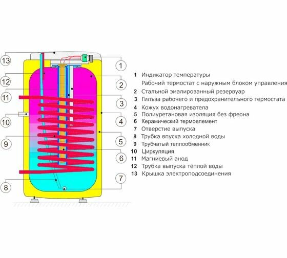 | Метод нагрева накопительного водонагревателя | косвенный |
