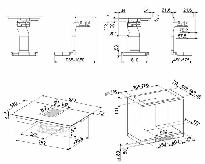Встраиваемые индукционные панели SMEG/ Индукционная варочная панель со встроенной вытяжкой, 83 см, прямой край, черное стекло