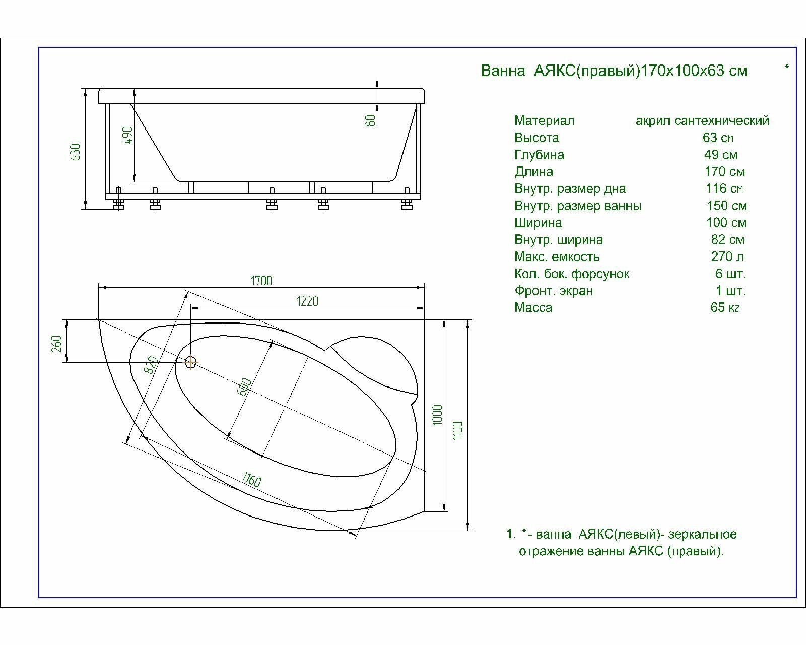 | Дополнительная информация | в комплекте: ванна (правая), вклеенный каркас, фронтальный экран |