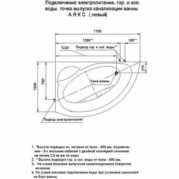 Акриловая ванна Aquatek Аякс 2 170x110 R