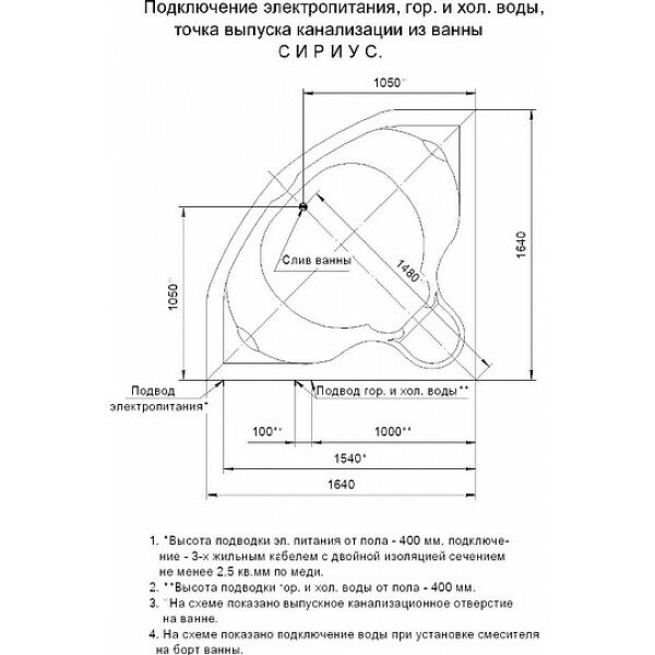Ванна акриловая АКВАТЕК Сириус 164х164 SIR164-0000002