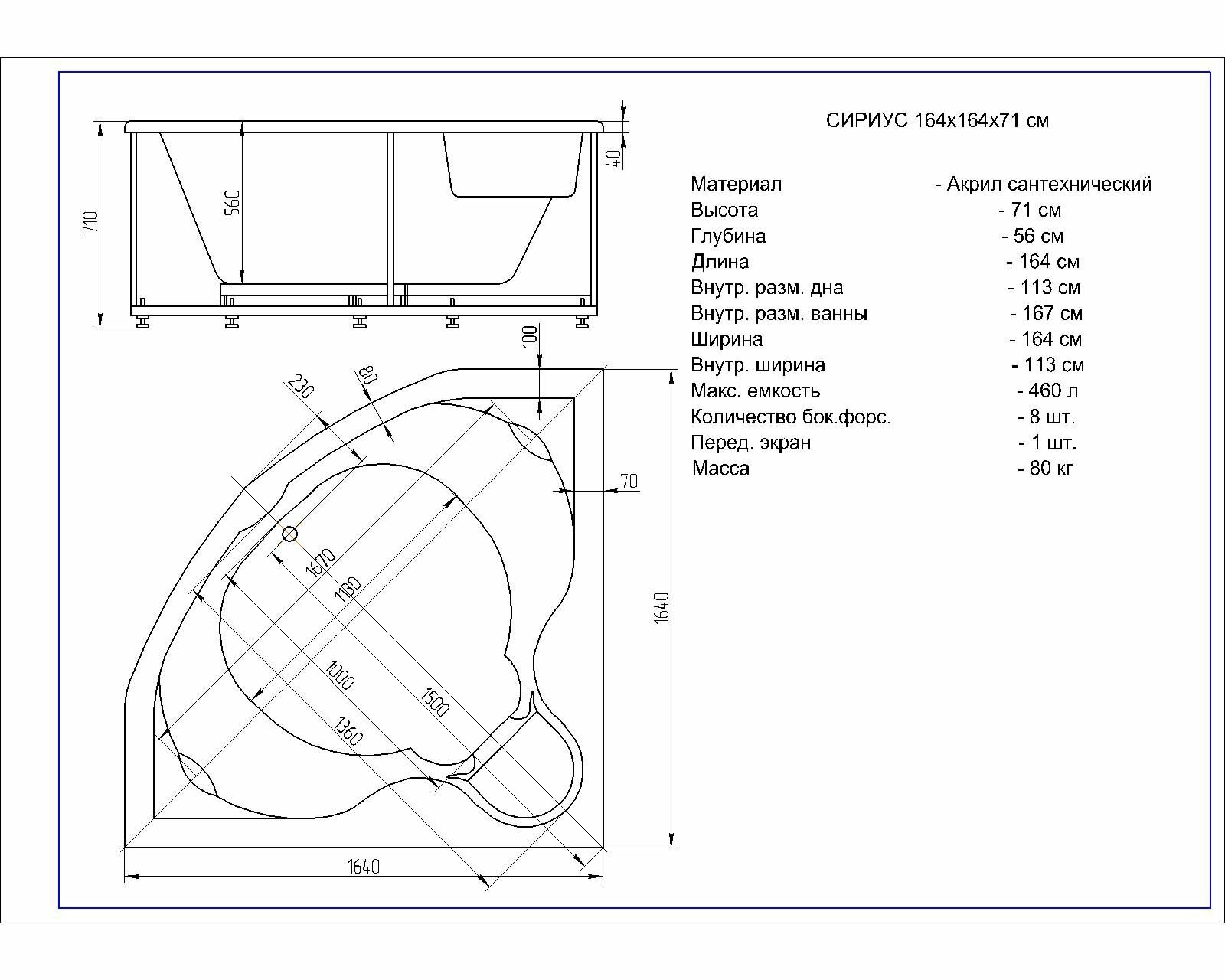 | Подробная комплектация | ванна, каркас, фронтальная панель |