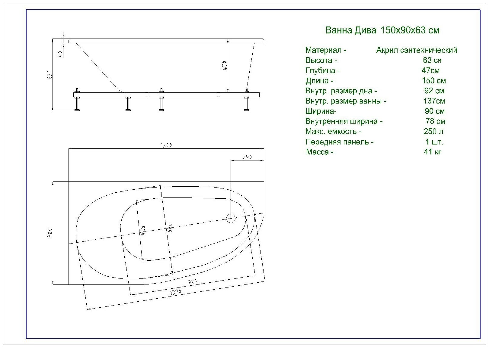 | Объем | 290 л |