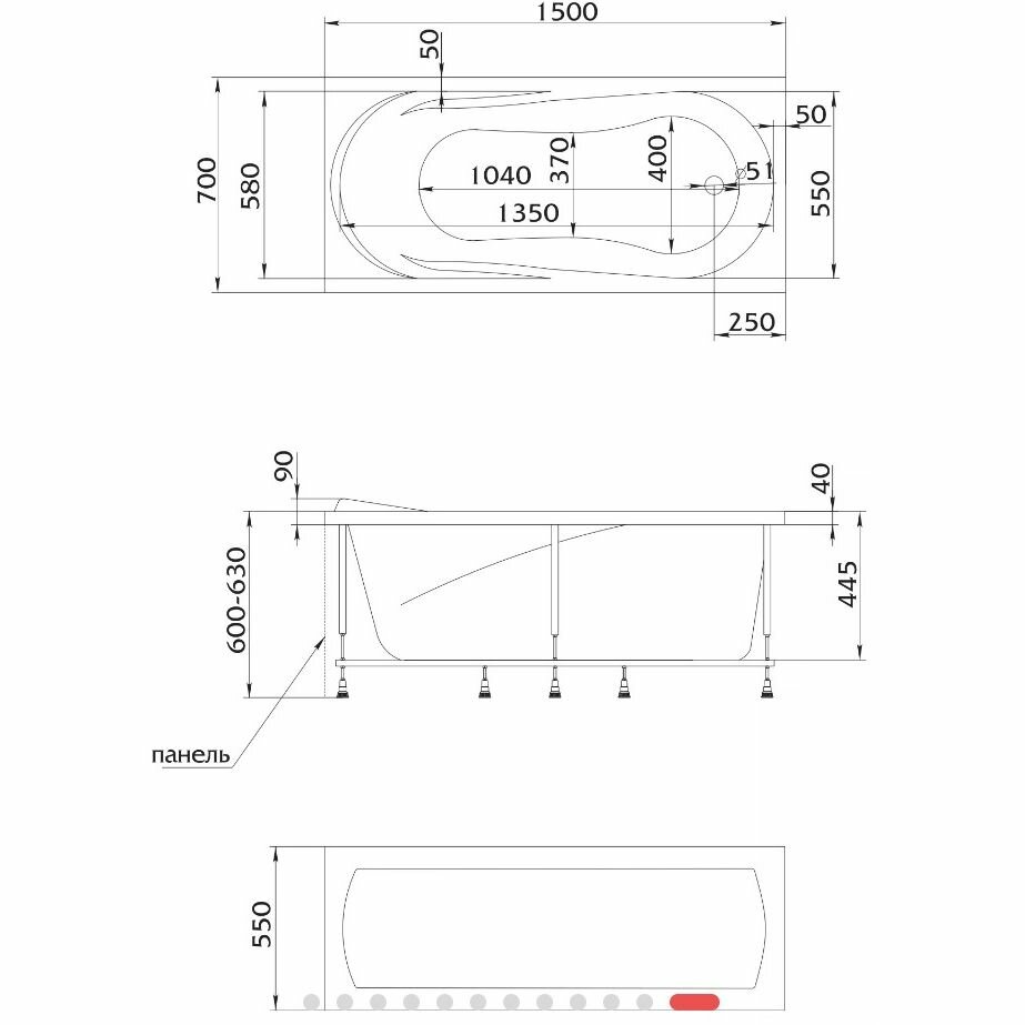 Ванна акриловая прямоугольная 1MarKa Medea 1500х700 белый (01ме1570) интересное: