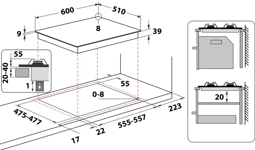 | Минусы: | Не удобное расположение горелок, больше 2 кастрюль не поставишь |