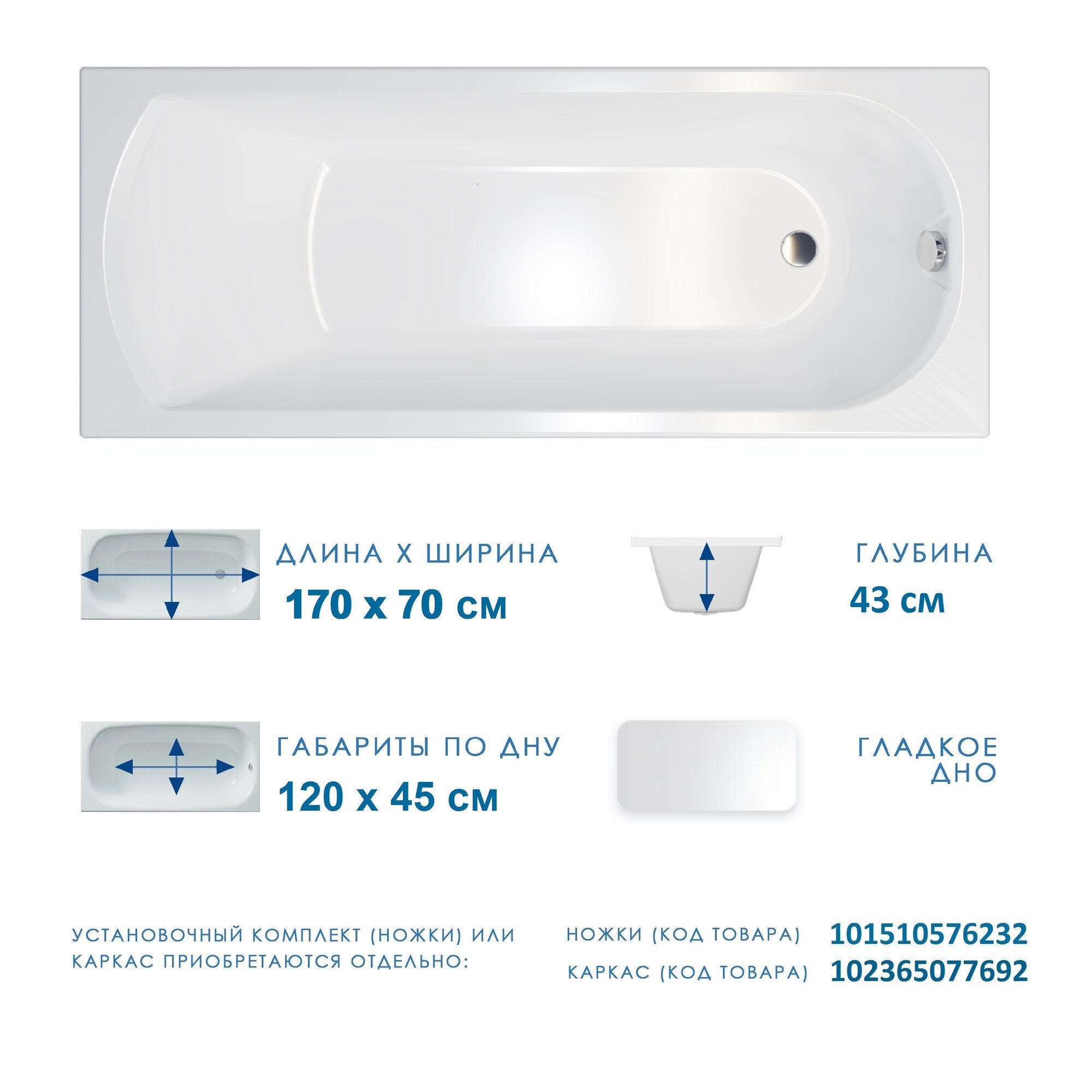 Ванна акриловая 1ACReal Дюна 170х70 интересное: