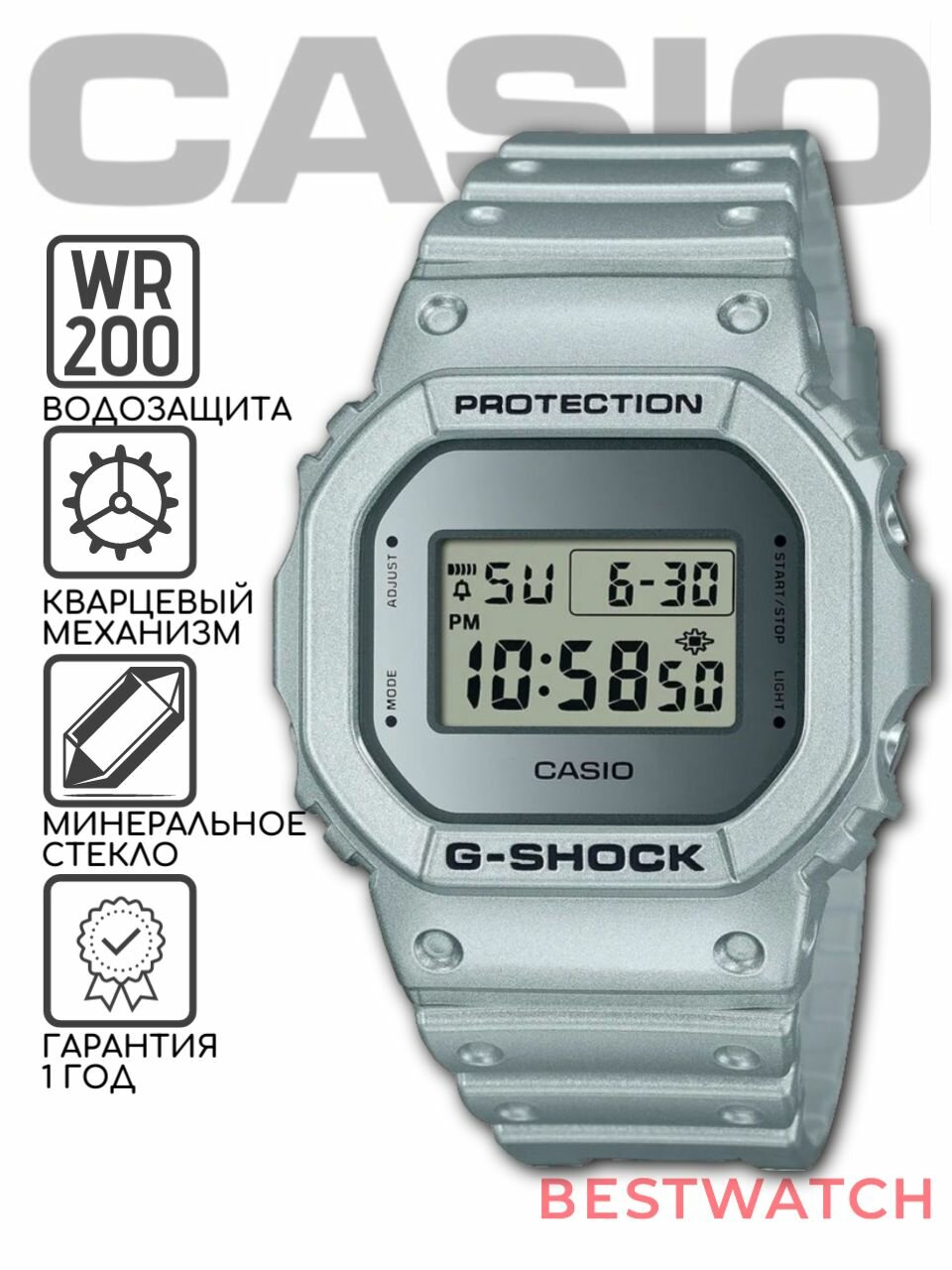 Наручные часы CASIO G-Shock GM-5600-1 кварцевые, будильник, хронограф, секундомер, таймер обратного отсчета, водонепроницаемые, противоударные, подсветка дисплея, серебряный