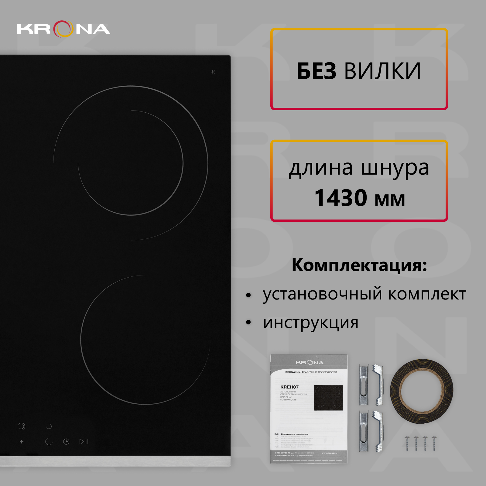 Krona Cello 60 Bl/s Электрическая варочная поверхность .