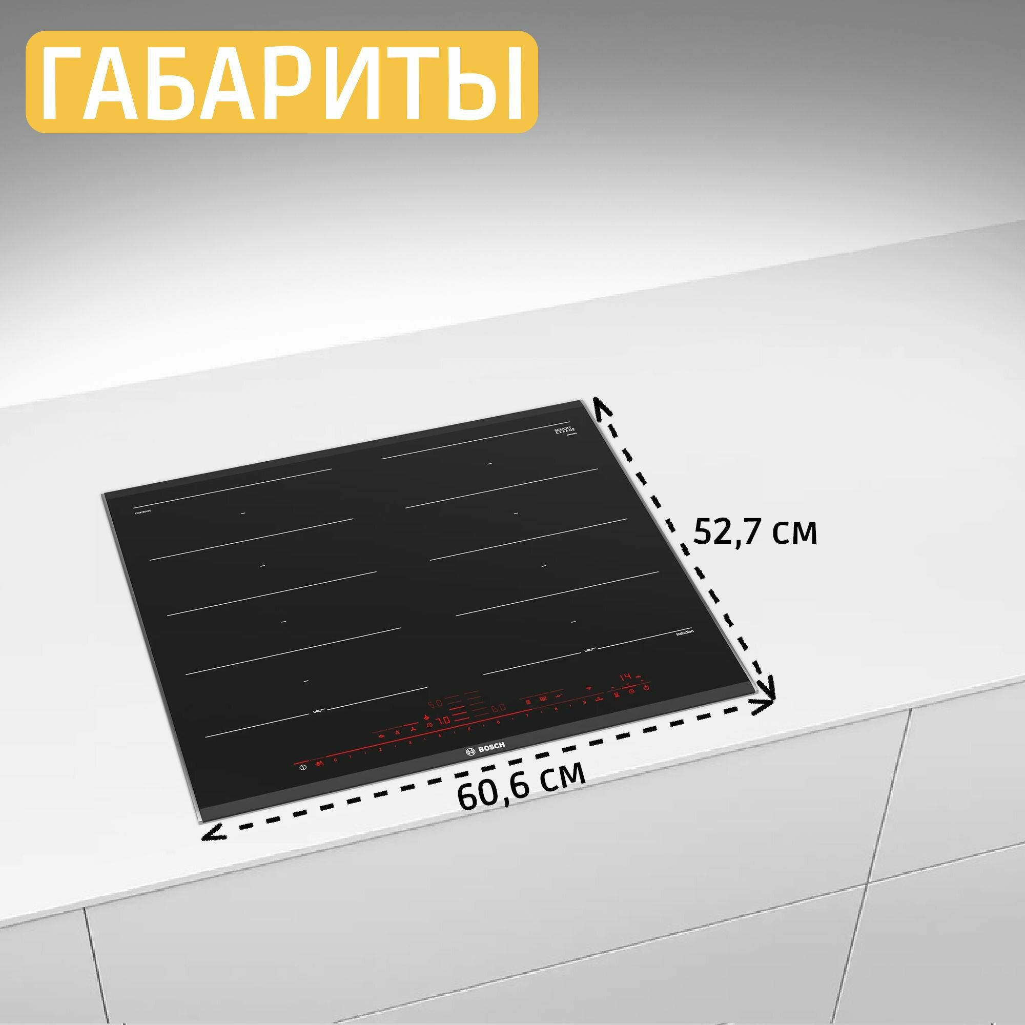 Встраиваемая индукционная варочная панель BOSCH PXX675DV1E Series 8, 51x606x527 , 4 зоны, макс. мощность 3.7 кВт, 17 ступеней, FlexInduction, MoveMode