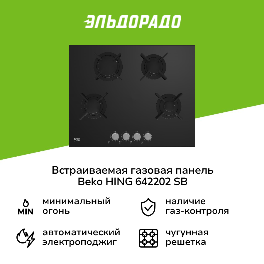 Газовая варочная панель Beko HING642202SB, независимая, черный