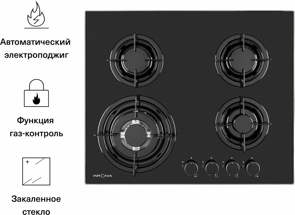 Газовая варочная поверхность Krona CORTESIA 60 BL черный (ка-00001521)