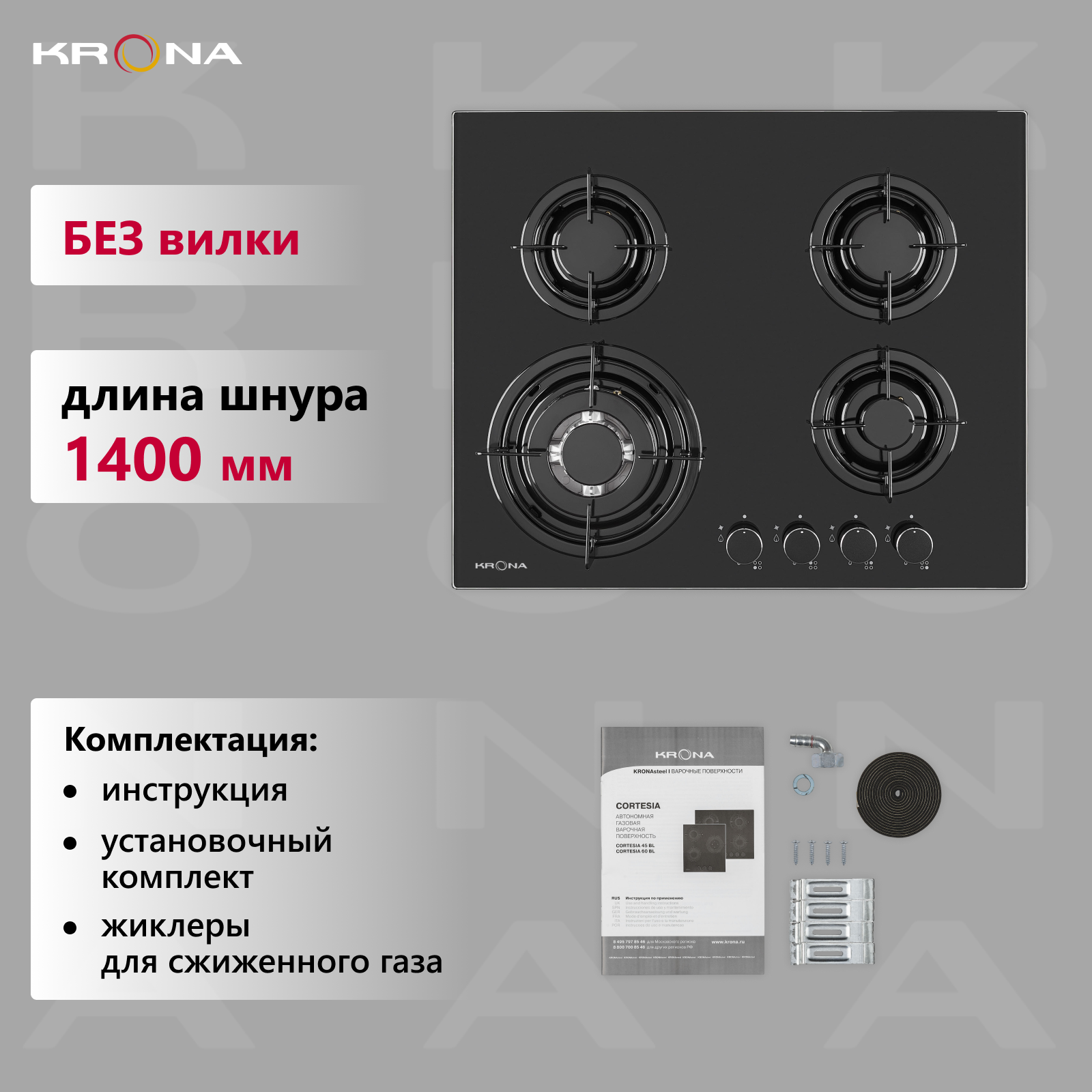 Газовая варочная поверхность KRONA CORTESIA 60 BL, черный (КА-00001521)