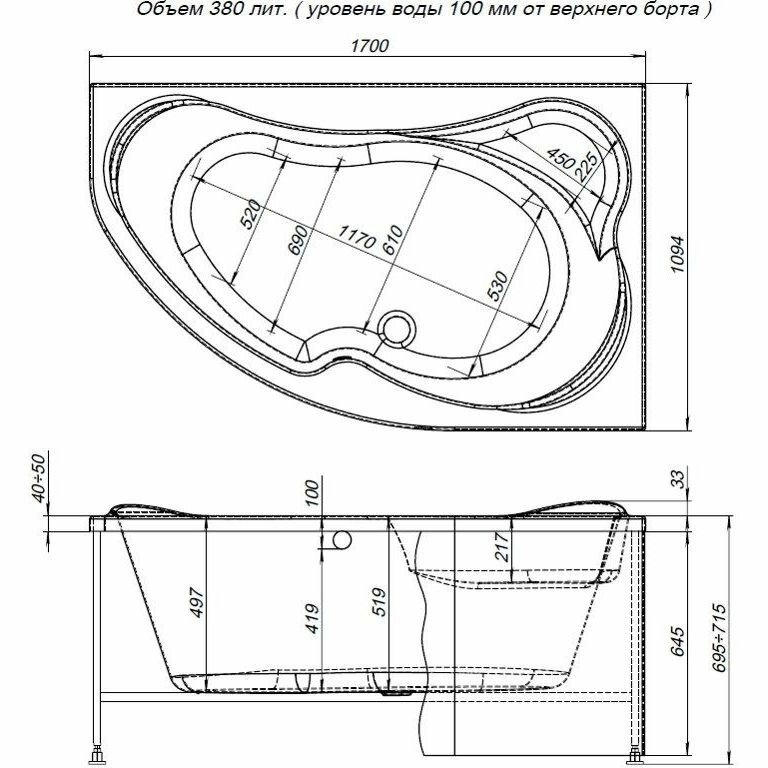 Акриловая ванна Aquanet Capri 170x110 R 00205387 с каркасом, цвет белый интересное: