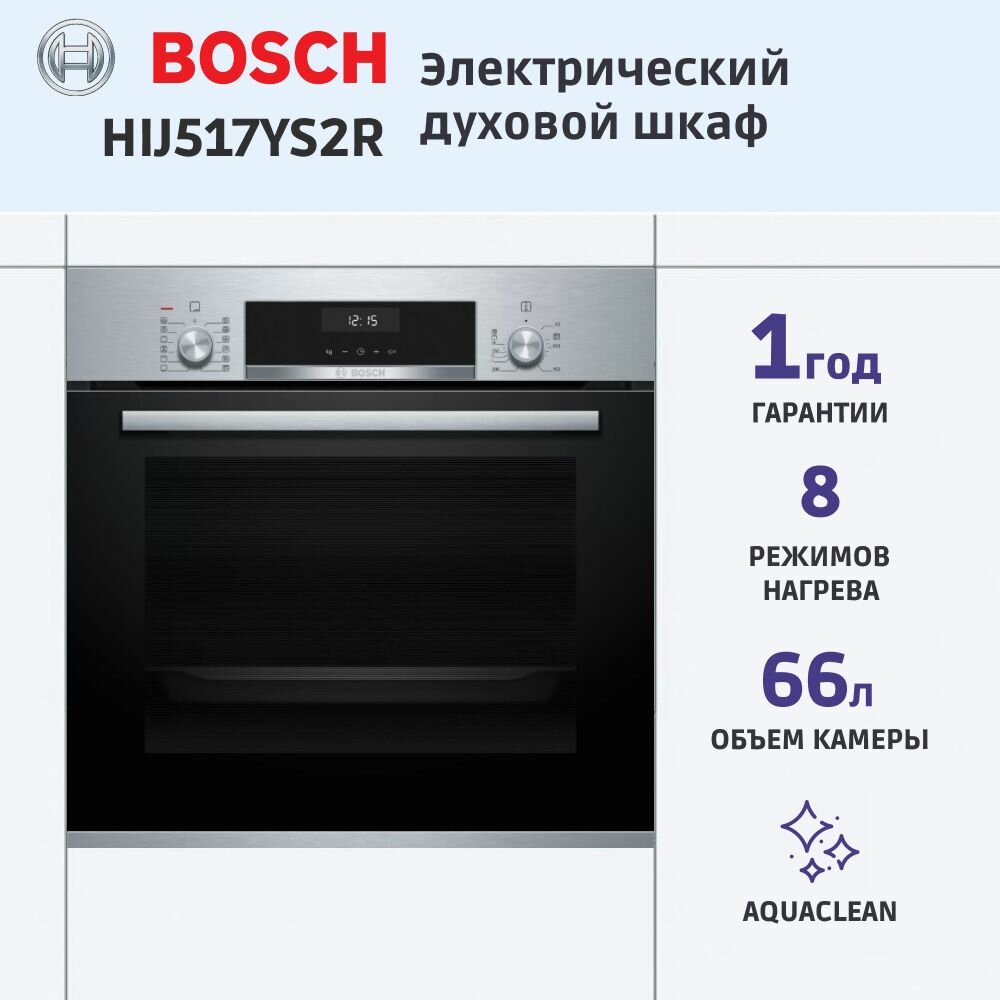 Электрический духовой шкаф Bosch HIJ517YS2R Serie 6, 59.4 см, 66 л, 10 режимов, гриль, конвекция, паровая очистка, серебристый
