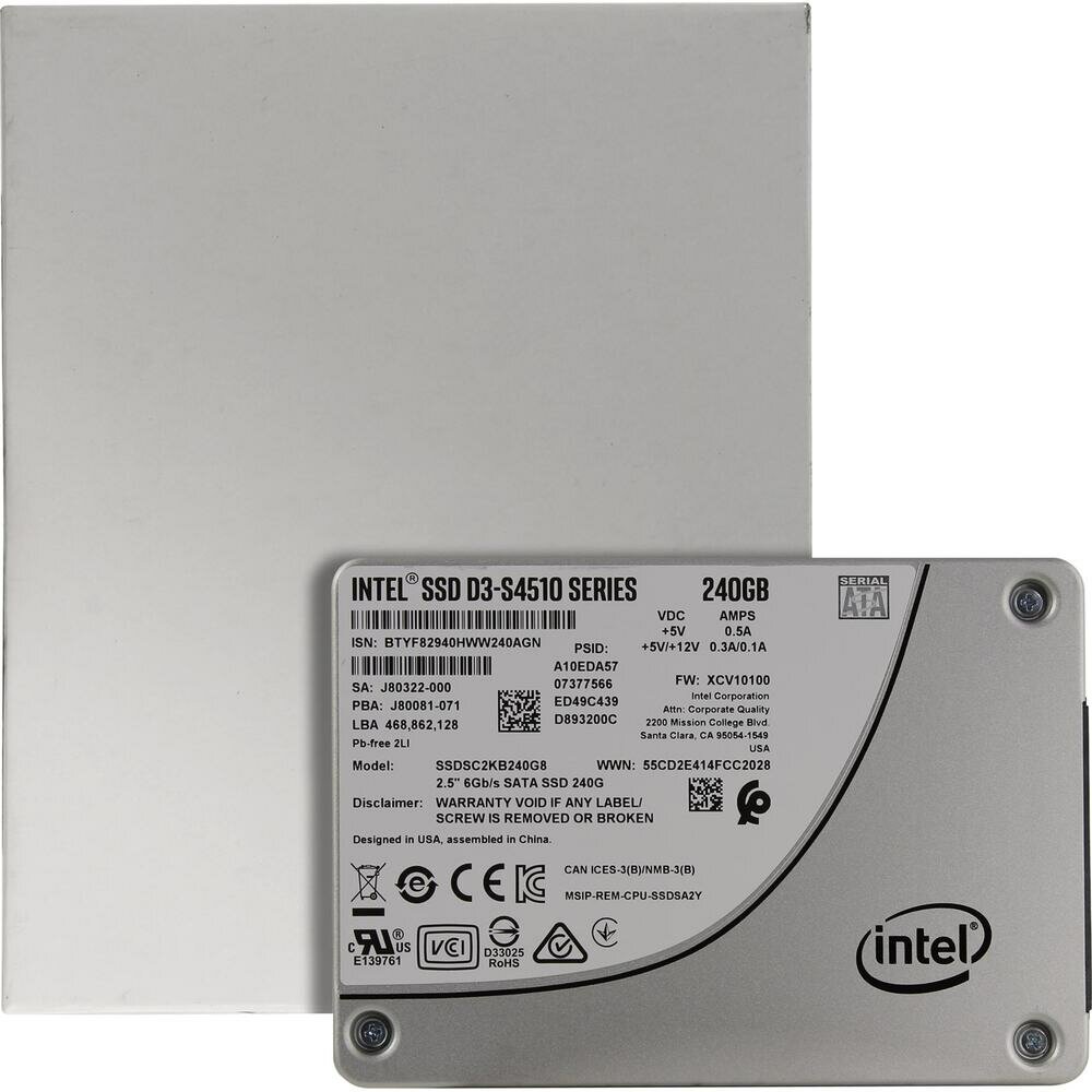 SSD накопитель Intel DC D3-S4510 SSDSC2KB240G801 240ГБ, 2.5", SATA III, SATA