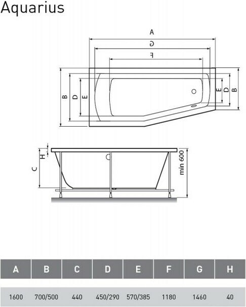Ванна Relisan AQUARIUS 160x70см левосторонняя (Гл000013735)