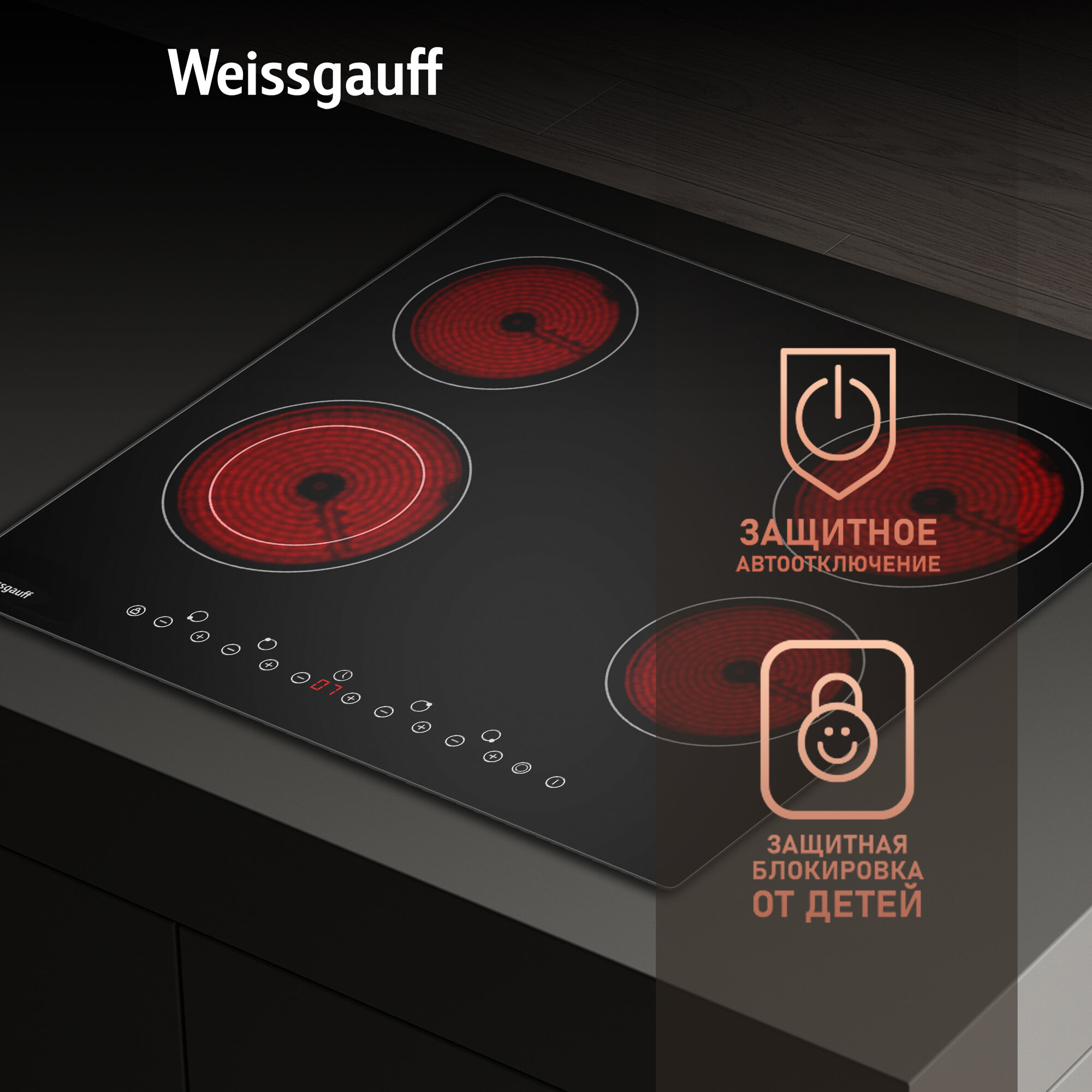 Стеклокерамическая панель Weissgauff HV 641 B двухконтурная зона подогрева, 3 года гарантии, 58 см ширина, таймер интересное:
