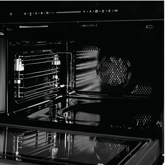 Встраиваемый духовой шкаф/ Компактный духовой шкаф с функцией СВЧ, высота прибора 45 см, электронное сенсорное управление Full TouchControl, LЕD дисплей белого цвета Cold White, 10 режимов нагрева духовки, 4 режима СВЧ, включая 3 кобинированных режима; ав