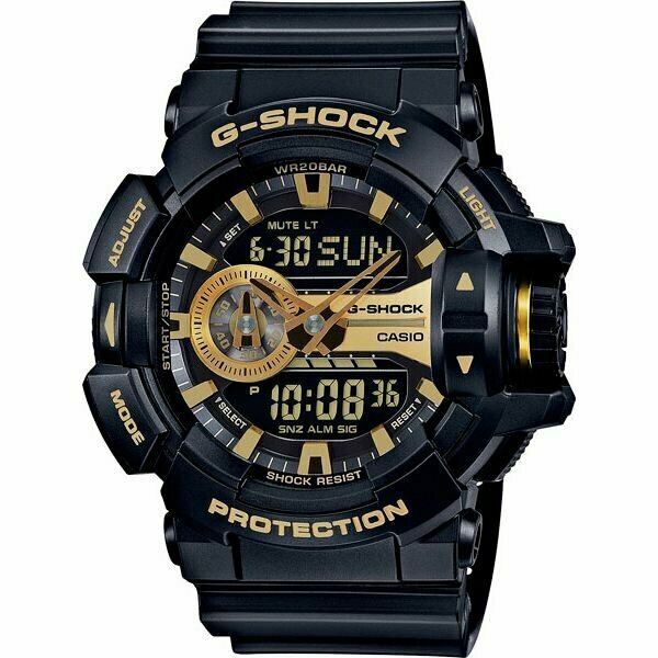Наручные часы CASIO G-Shock GA-400-1B мужские, кварцевые, будильник, секундомер, таймер обратного отсчета, подсветка дисплея, водонепроницаемые, противоударные, черный