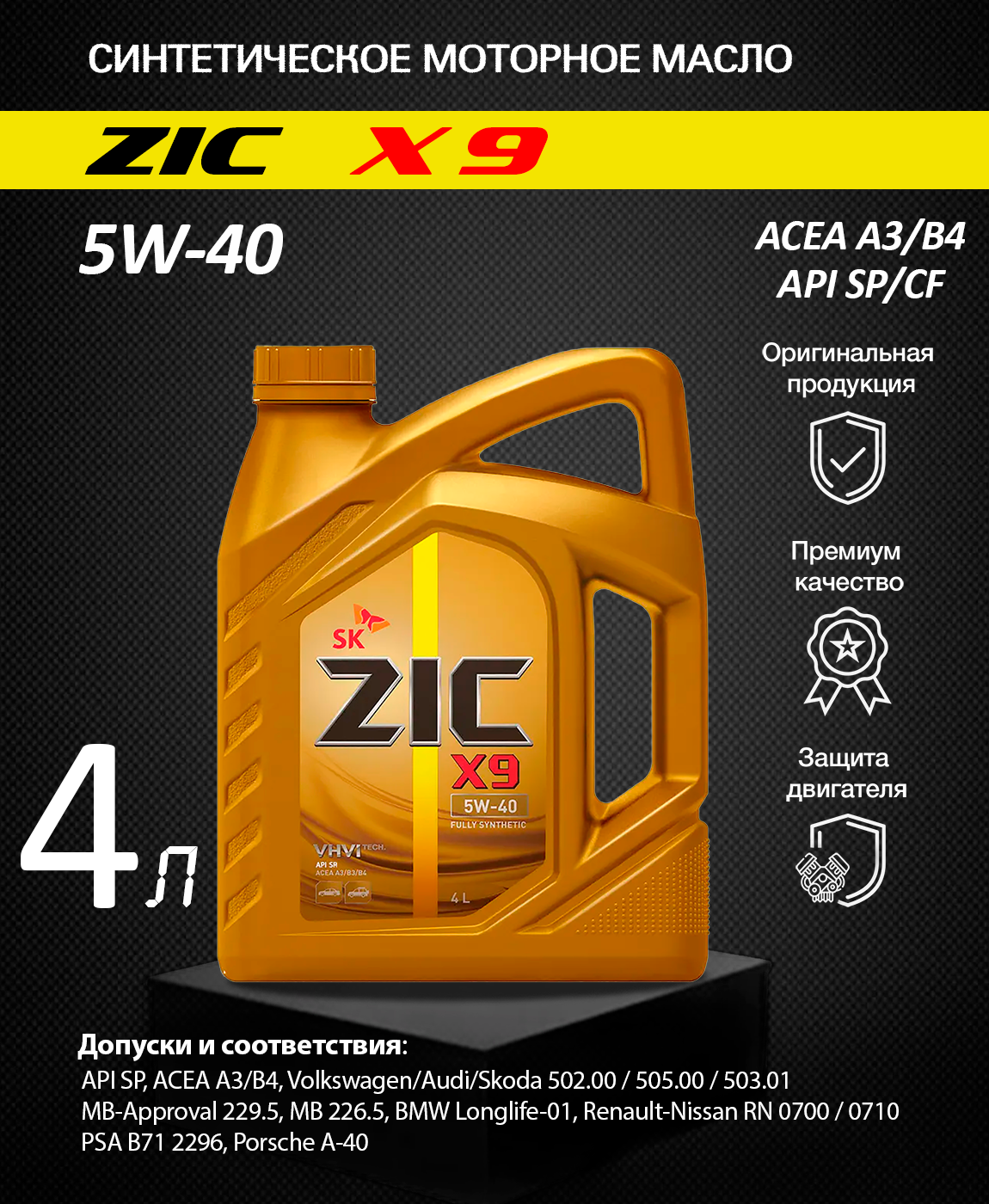 ZIC 162000 ZIC X9 5W40 (4L)_масло моторное!\ API SP, ACEA A3/B4, VW 502.00/505.00/503.01, LL-01, RN 0700/0710