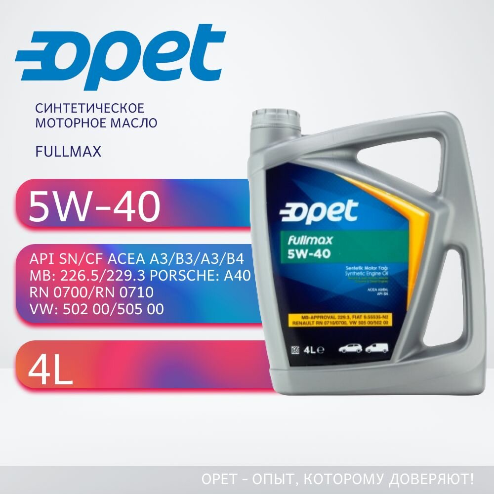 OPET Масло Моторное 5w40 Opet 4л Синтетика Fullmax A3/B4 Api Sn/Cf (Vw 505 00/502 00)