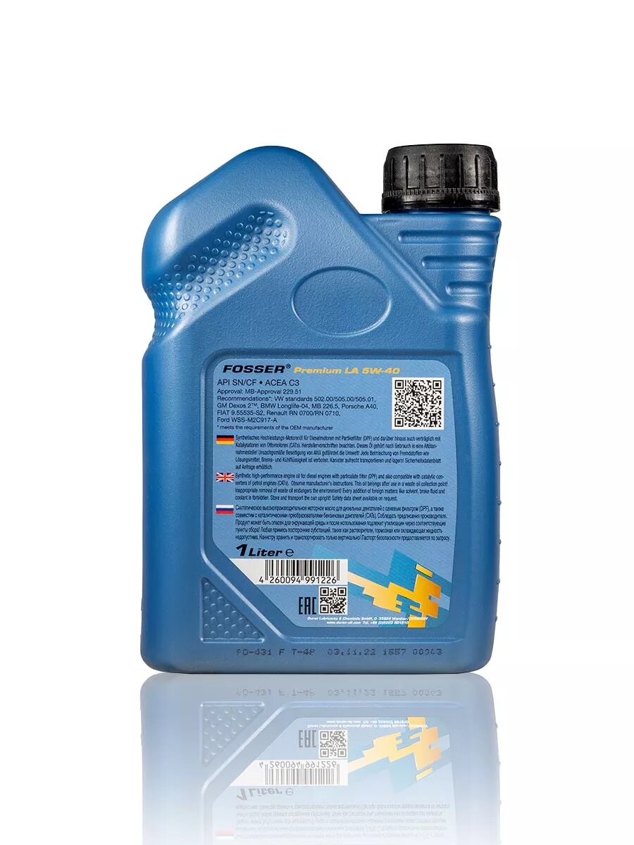Моторное масло FOSSER Premium LA 5W-40, 1л интересное: