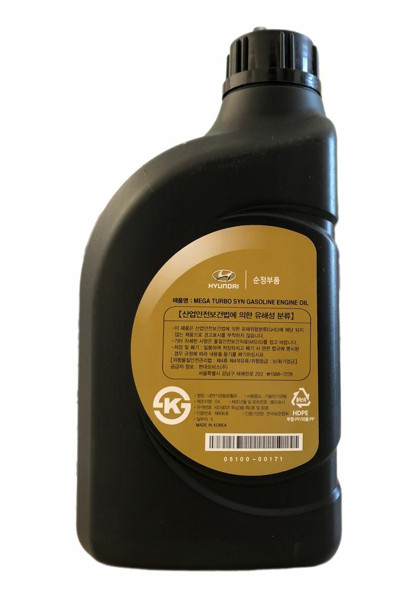 Масло Моторное Hyundai/Kia Mega Turbo Syn 0W-30 Синтетическое 1 Л 05100-00171 Hyundai-KIA арт. 05100-00171