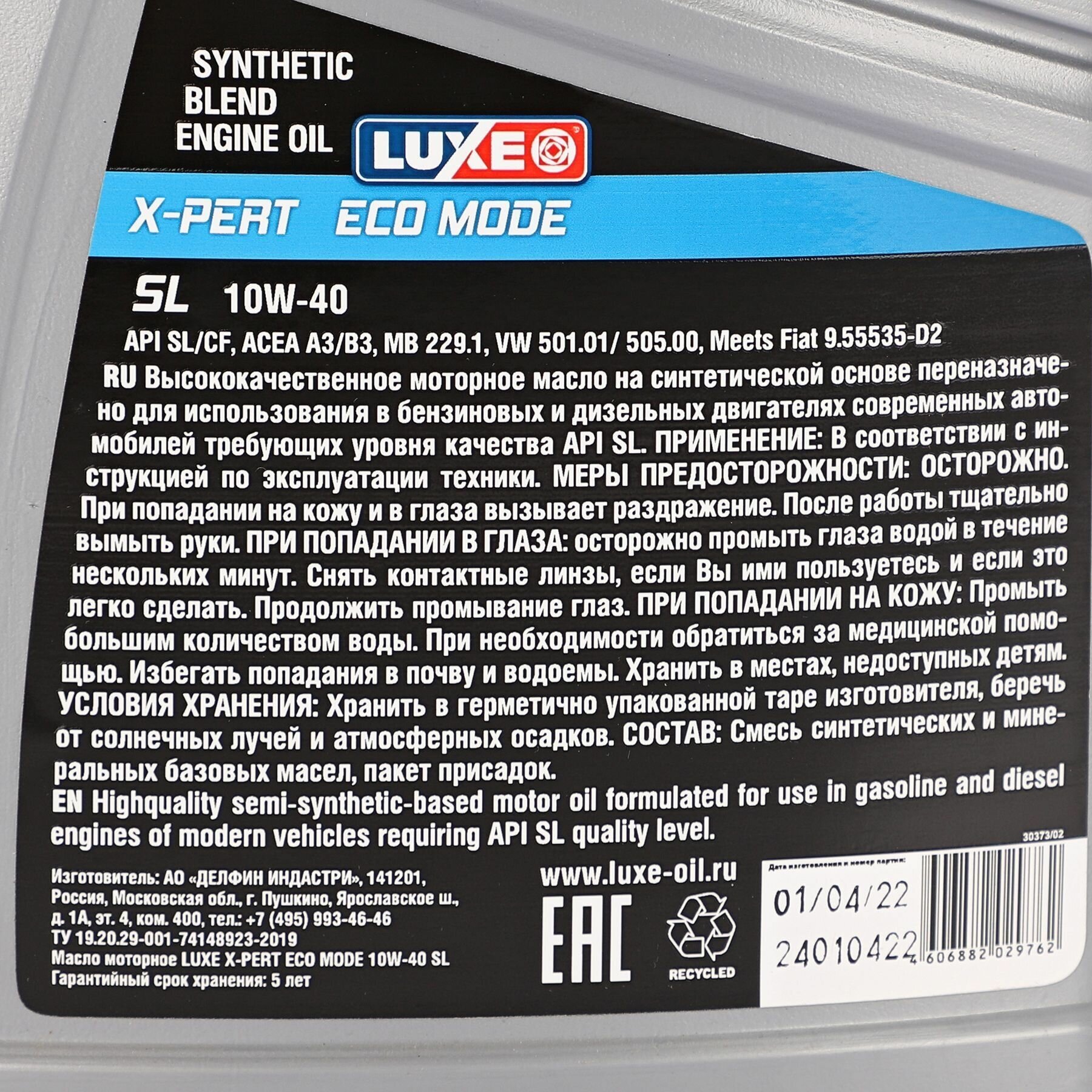 Купить масло luxe e.i.t. synthetic blend engine oil x-pert eco mode 10w-40 4 л синтетика моторное