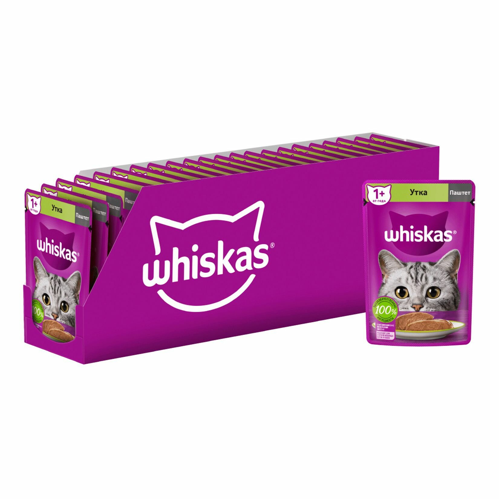 Whiskas пауч для кошек (паштет) Утка, 75 г. упаковка 24 шт