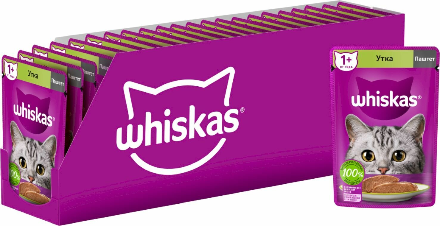 Whiskas влажный корм для взрослых кошек, паштет с уткой, в паучах - 75 г х 24 шт