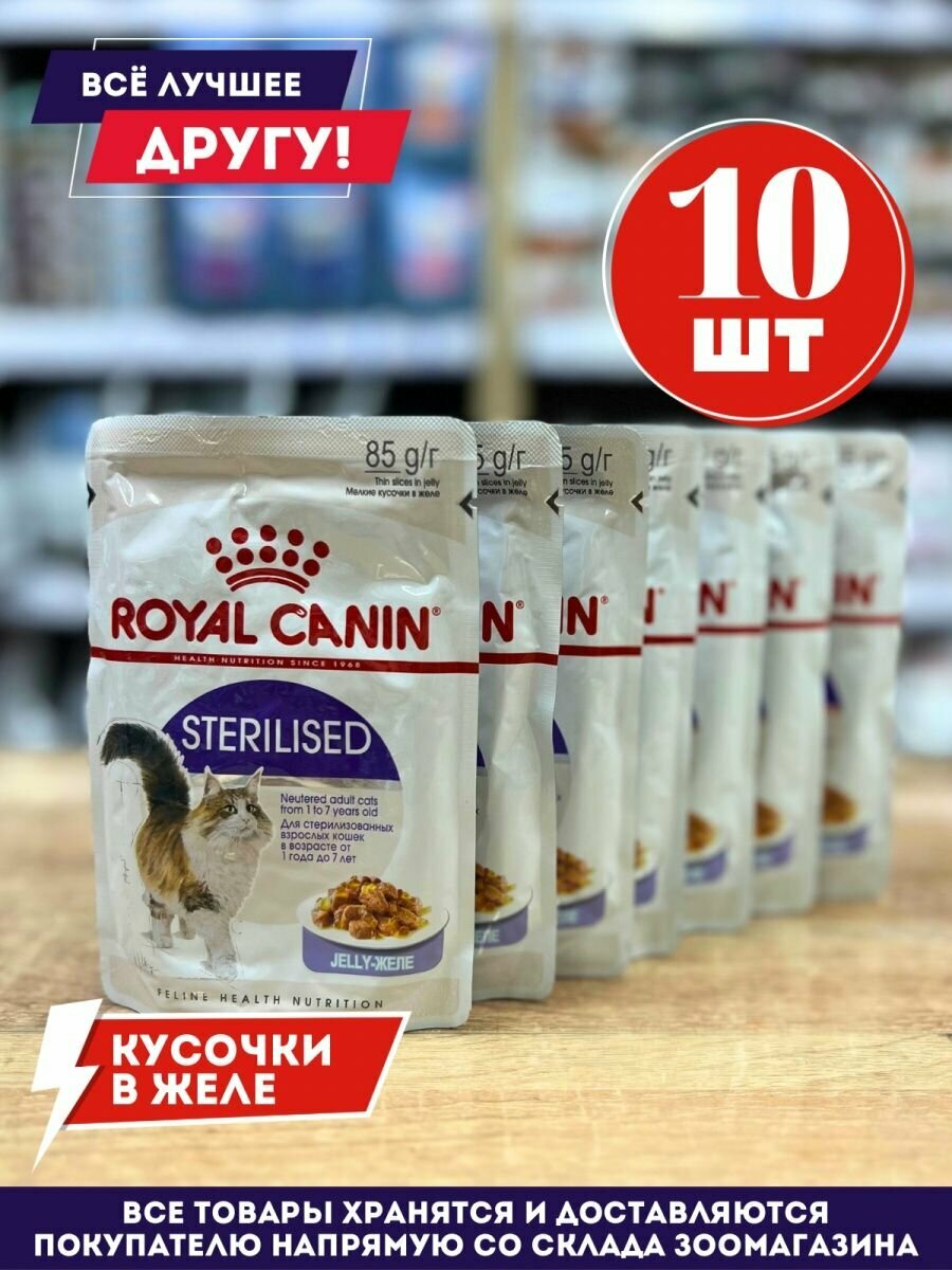 Купить Влажный корм "Роял Канин" паучи в желе для стерилизованных кошек 85гр*10 шт