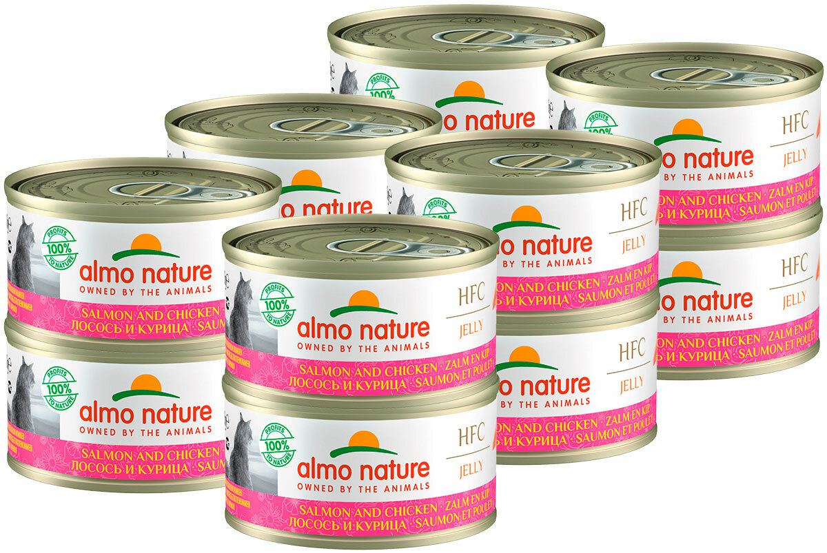 Купить ALMO NATURE CAT LEGEND HFC для взрослых кошек с лососем и курицей в желе банка 70 гр 70 гр х 12 шт