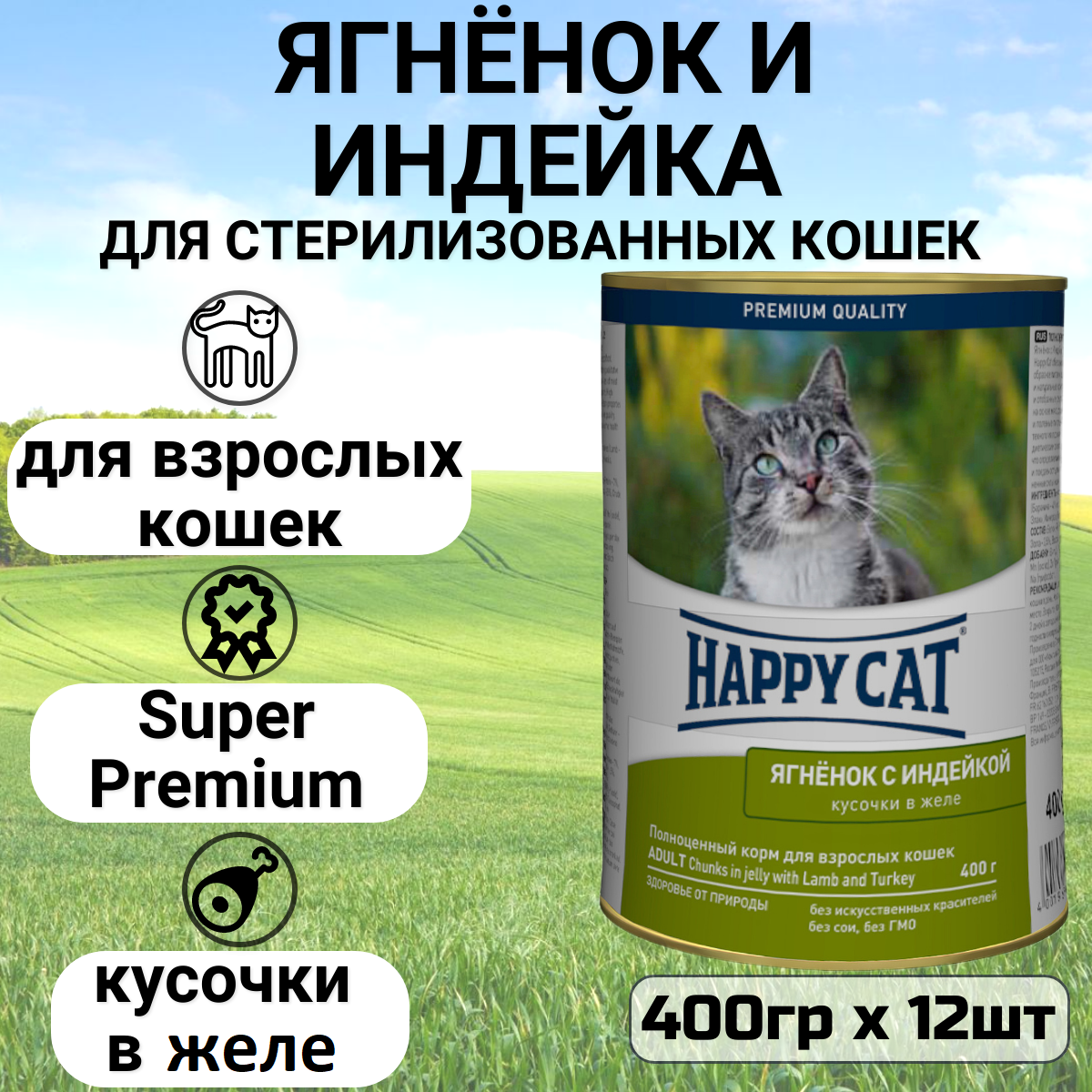 Купить Влажный корм для кошек Happy Cat ягненок, индейка (12шт х 400гр)