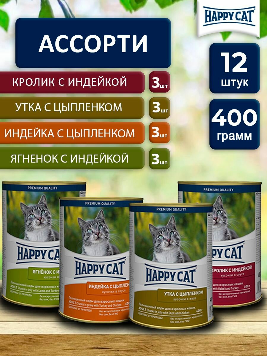 Купить Влажный корм для кошек Happy Cat Ассорти (12шт х 400гр)