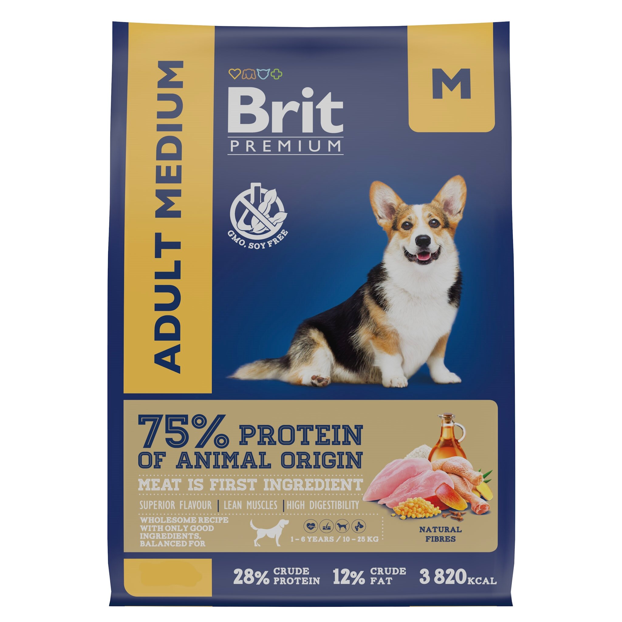 BRIT PREMIUM DOG ADULT MEDIUM для взрослых собак средних пород с курицей (3 кг х 3 шт)