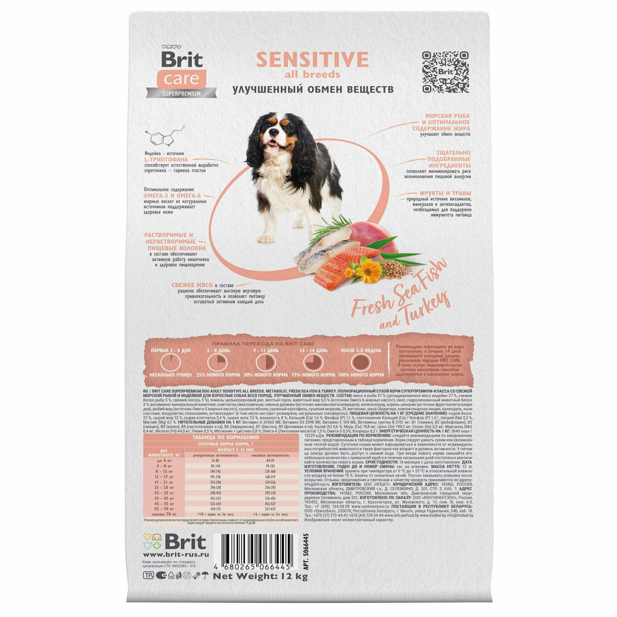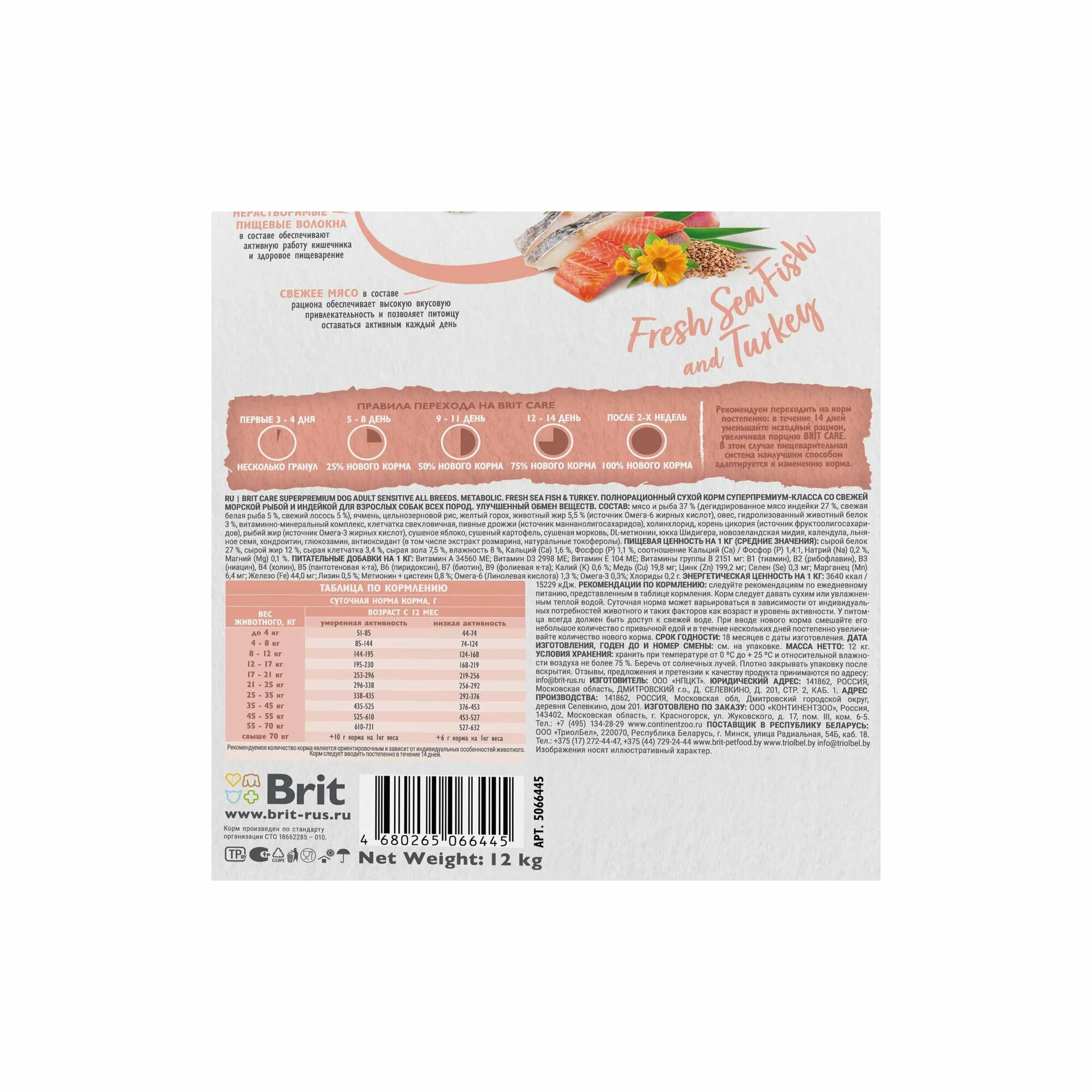 Купить Brit Care Dog Adult Sensitive Metabolic 12 кг сухой корм для взрослых собак, с морской рыбой и индейкой